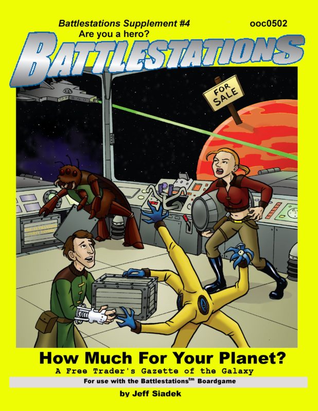 Battlestations is the tabletop boardgame/RPG of heroic starship adventure. You and your friends are the crew aboard a starship on amazing adventures. Your character moves around the starship to operate and repair it while your starship moves around the hex map. If you want your ship to turn, you have to go to your helm and test your piloting skill. If you don’t have enough power, go to the engine and test engineering skill. Cannons, teleporters, and missile bays are among the many modules your ship might have.